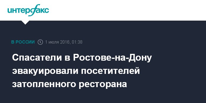 Москва. 1 июля. INTERFAX.RU - Эвакуированы посетители одного из ростовских ресторанов, заблокированные мощными дождевыми потоками, сообщили агентству "Интерфакс" в экстренных службах региона.