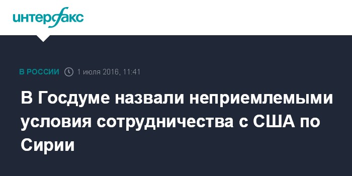 Москва. 1 июля. INTERFAX.RU - США выдвигают неприемлемые требования - приостановка операций сирийских ВВС в качестве условия для американо-российского сотрудничества в Сирии, заявил "Интерфаксу" в пятницу глава думского комитета по обороне, бывший командующий Черноморским флотом РФ Владимир Комоедов.