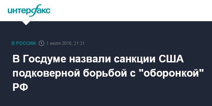 Москва. 1 июля. INTERFAX.RU - Американские санкции против российских оборонных предприятий - признак недобросовестной конкуренции, заявил "Интерфаксу" в пятницу первый заместитель главы комитета Госдумы по обороне Андрей Красов.