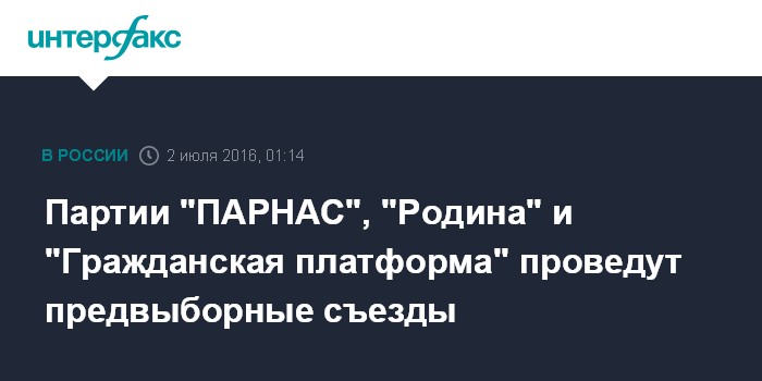 Москва. 2 июля. INTERFAX.RU - Три непарламентские партии, имеющие право участвовать в выборах в Госдуму без сбора подписей, в субботу проведут предвыборные съезды.