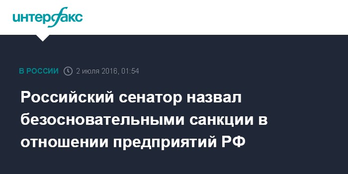 Российский сенатор назвал безосновательными санкции в отношении предприятий РФ