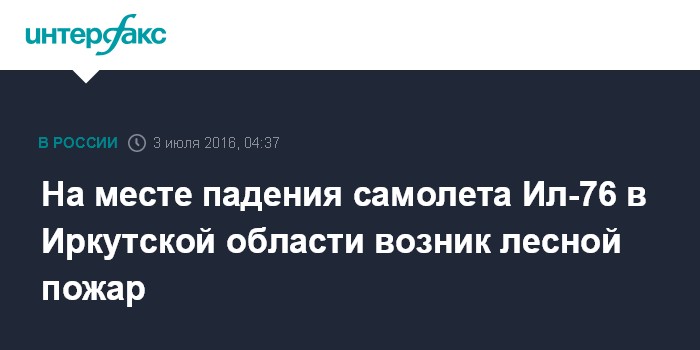 На месте падения самолета Ил-76 в Иркутской области возник лесной пожар