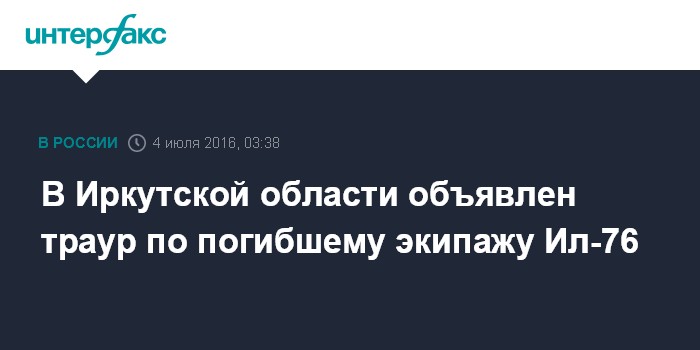 "Понедельник объявлен днем траура. На всей территории Иркутской области приспущены флаги региона и муниципалитетов. Отменены развлекательные мероприятия. В храмах проходят панихиды по погибшему экипажу Ил-76", - сообщили агентству "Интерфакс" в пресс-службе регионального правительства.
