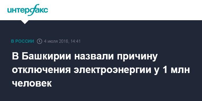 Ранее источник в экстренных службах Башкирии говорил, что отключение произошло, предположительно, из-за короткого замыкания.