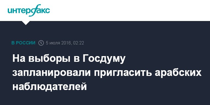 Москва. 5 июля. INTERFAX.RU - На сентябрьские выборы в Госдуму собираются впервые пригласить наблюдателей из Ассоциации организации выборов арабских стран, сообщает газета "Известия" во вторник.