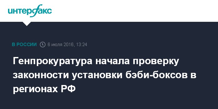 "Ваше обращение по поводу законности установки в организациях бэби-боксов, их деятельности, проверки достоверности сведений о количестве оставленных в них детей и их последующем устройстве, принято к рассмотрению. Организована проверка", - цитирует пресс-служба Мизулиной ответ Генпрокуратуры на запрос сенатора.