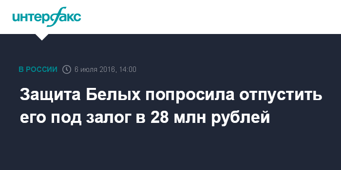 Защита Белых попросила отпустить его под залог в 28 млн рублей