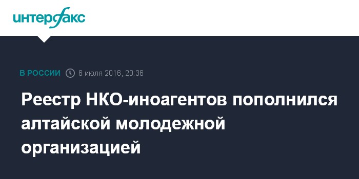 Реестр НКО-иноагентов пополнился алтайской молодежной организацией