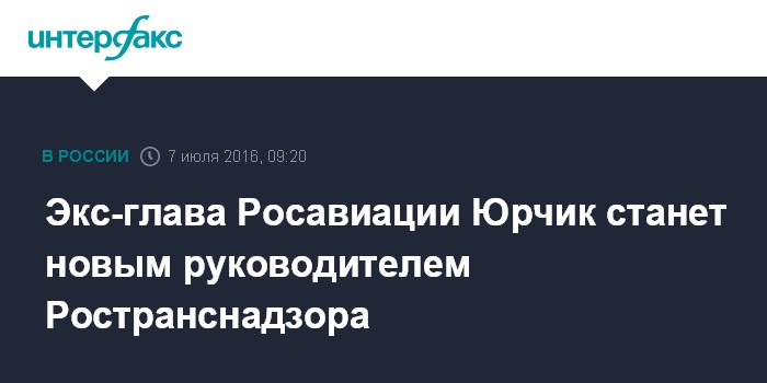 Москва. 7 июля. INTERFAX.RU - Новым руководителем Ространснадзора (подчиняется Минтрансу РФ) станет заместитель начальника управления президента по обеспечению деятельности Госсовета РФ, экс-глава Росавиации Александр Юрчик, сообщили "Интерфаксу" два источника в авиаотрасли.