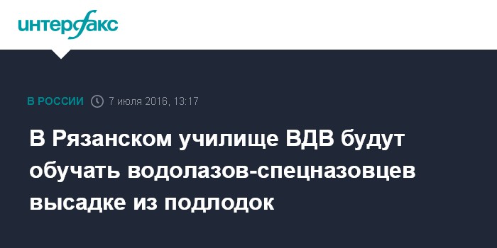 Москва. 7 июля. INTERFAX.RU - На базе Рязанского училища ВДВ будет осуществляться подготовка водолазов спецподразделений Минобороны высадке из подводных лодок, находящихся в подводном положении. Об этом говорится в документах, приложенных к годовому отчету Центрального конструкторского бюро морской техники "Рубин" (входит в Объединенную судостроительную корпорацию).