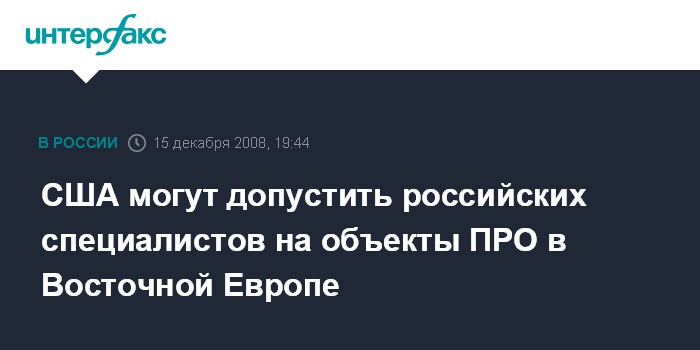 Москва. 15 декабря. INTERFAX.RU - США готовы допустить российских военных на объекты американской противоракетной обороны в Польше и Чехии, заявил "Интерфаксу" в понедельник и.о. замгоссекретаря США Джон Руд.