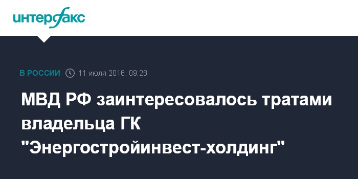 МВД РФ заинтересовалось тратами владельца ГК "Энергостройинвест-холдинг"