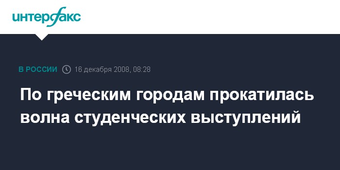 Москва. 16 декабря. INTERFAX.RU - Новая волна студенческих манифестаций прокатилась в понедельник по улицам Афин и других городов Греции, однако сейчас они проходят с меньшим накалом, чем прежде.