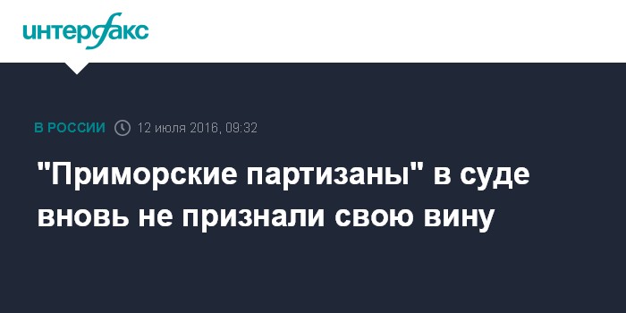 Москва. 12 июля. INTERFAX.RU - Подсудимые в ходе прений сторон на повторном процессе по делу так называемых "приморских партизан" не признали свою вину, передал корреспондент "Интерфакса" из зала Приморского краевого суда во Владивостоке.