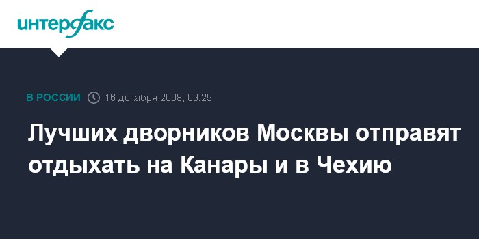На организацию поездки власти города выделили 7 млн рублей. "На протяжении всех последних лет победители конкурса "Московский дворик" - лучшие работники сферы жилищно-коммунального хозяйства города - ездят отдыхать в Чехию и на Канарские острова", - рассказал собеседник агентства.