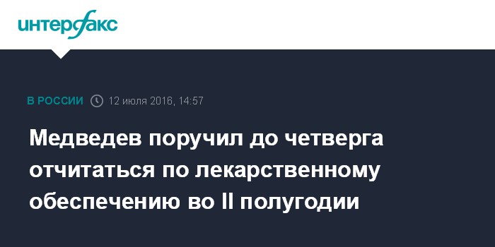 Москва. 12 июля. INTERFAX.RU - Глава правительства Дмитрий Медведев поручил в ближайшие дни представить отчет по лекарственному обеспечению во втором полугодии 2016 года, сообщил первый вице-премьер Игорь Шувалов по итогам совещания о ходе реализации плана действий по стабильному социально-экономическому развитию РФ на текущий год.