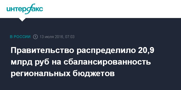 Правительство распределило 20,9 млрд руб на сбалансированность региональных бюджетов
