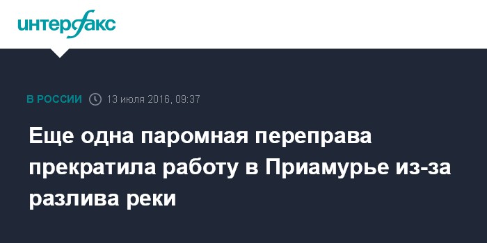"С 11 по 12 июля на территории Зейского района выпали обильные осадки, что привело к подъему уровня воды в реке Гилюй. С целью обеспечения безопасности временно приостановлена работа паромной переправы в районе поселка Береговой. Без транспортного сообщения остались поселки Береговой и Кировский", - сообщает пресс-служба регионального ГУ МЧС России.