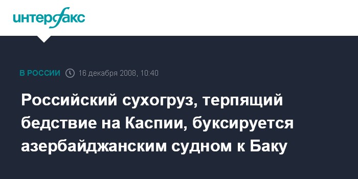 Российский сухогруз, терпящий бедствие на Каспии, буксируется азербайджанским судном к Баку