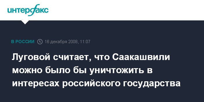 Москва. 16 декабря. INTERFAX.RU - Депутат Госдумы Андрей Луговой, которого британские власти подозревают в отравлении полонием бывшего сотрудника российских спецслужб Александра Литвиненко, заявил, что отдал бы приказ уничтожить президента Грузии Михаила Саакашвили, если бы имел такие полномочия.