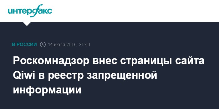 Москва. 14 июля. INTERFAX.RU - Роскомнадзор внес страницы с сайта платёжного сервиса Qiwi в реестр запрещенной информации, сообщил "Интерфаксу" представитель ведомства Вадим Ампелонский.