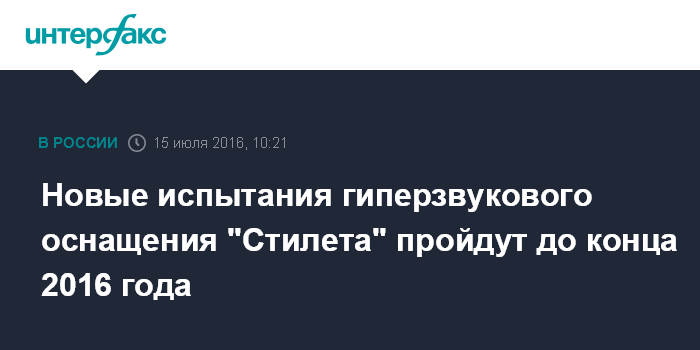 Новые испытания гиперзвукового оснащения "Стилета" пройдут до конца 2016 года