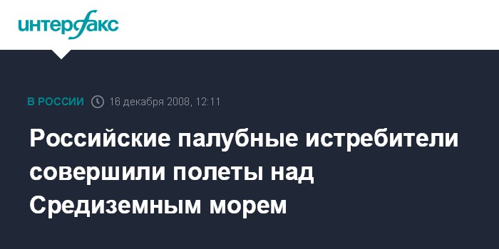 Москва. 16 декабря. INTERFAX.RU - Палубные истребители Су-33 во вторник выполнили полеты в Средиземном море с борта тяжелого авианесущего крейсера "Адмирал Кузнецов", сообщил "Интерфаксу-АВН" помощник главкома ВМФ России, капитан первого ранга Игорь Дыгало. "С борта "Адмирал Кузнецов" было осуществлено 10 вылетов самолетов палубной авиации Су-33. Также в воздух поднимались вертолеты Ка-27", - сказал он.
