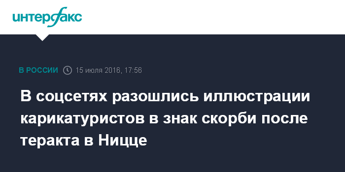 Москва. 15 июля. INTERFAX.RU - В социальных сетях распространились иллюстрации художников в знак соболезнования родственникам погибших в теракте в Ницце, произошедшем 14 июля, сообщает газета The International Business Times.