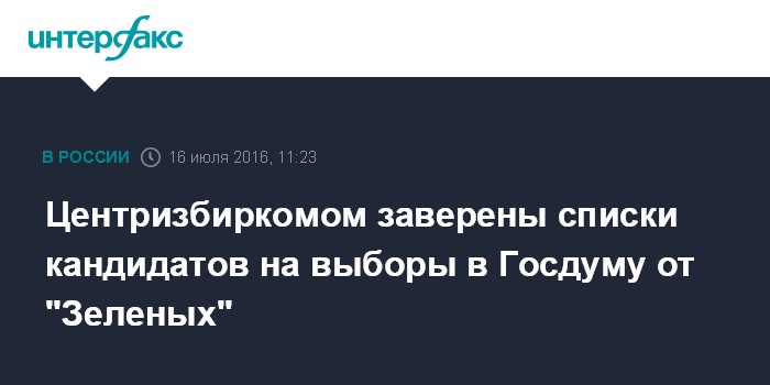 Москва. 16 июля. INTERFAX.RU - ЦИК РФ принял решение заверить федеральный список и список кандидатов по одномандатным округам депутатов в Госдуму от российской экологической партии "Зеленые".