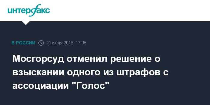 Мосгорсуд отменил решение о взыскании одного из штрафов с ассоциации "Голос"