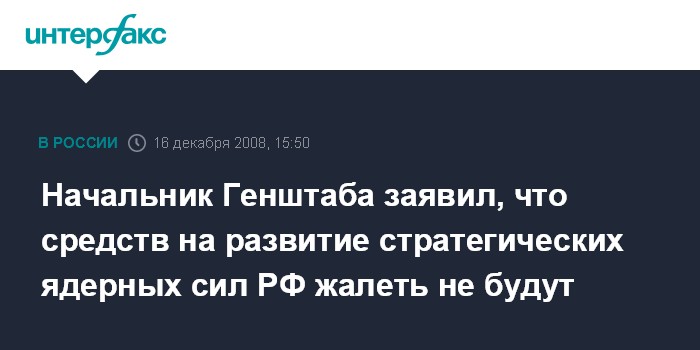 "Мы придавали, придаем и будем придавать стратегическим ядерным силам первостепенное значение, и на это денег жалеть не будем", - подчеркнул начальник Генштаба.