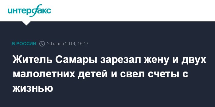 Житель Самары зарезал жену и двух малолетних детей и свел счеты с жизнью