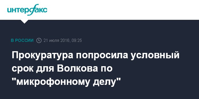 Прокуратура попросила условный срок для Волкова по "микрофонному делу"