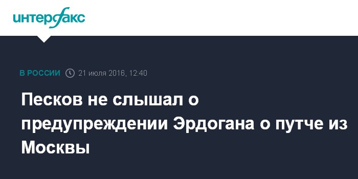 Москва. 21 июля. INTERFAX.RU - Пресс-секретарь президента РФ Дмитрий Песков заявил, что не располагает информацией о том, что Россия за несколько часов до путча якобы предупредила о нем турецкие власти.