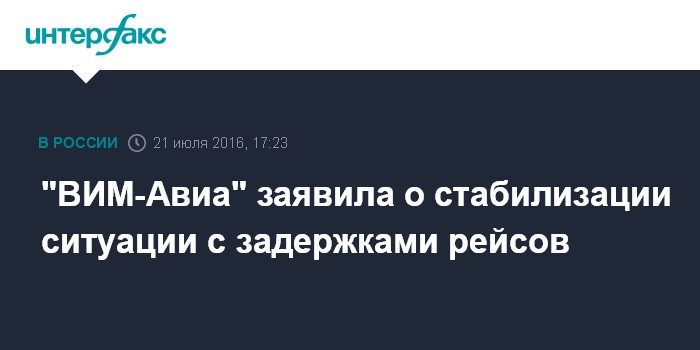 Москва. 21 июля. INTERFAX.RU - Авиакомпания "ВИМ-Авиа", рейсы которой в последние несколько дней выполнялись с многочасовыми задержками, заявила, что "ситуация стабилизируется".