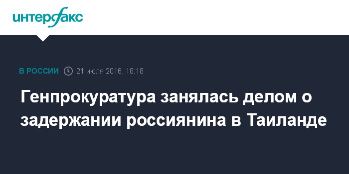 Генпрокуратура занялась делом о задержании россиянина в Таиланде
