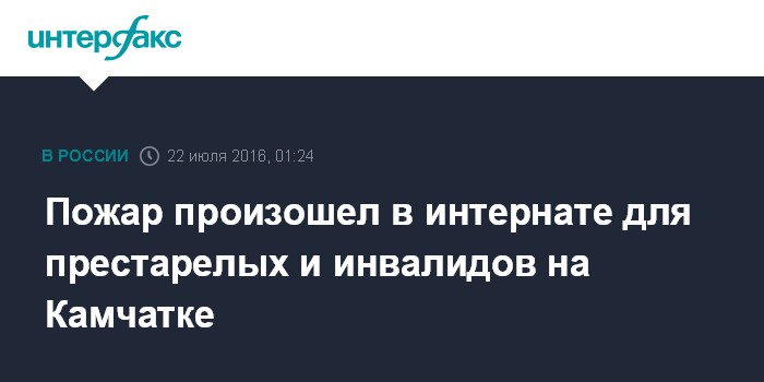 Москва. 22 июля. INTERFAX.RU - Пожар в доме-интернате для престарелых и инвалидов произошел в пятницу утром по местному времени в Елизовском районе Камчатского края.