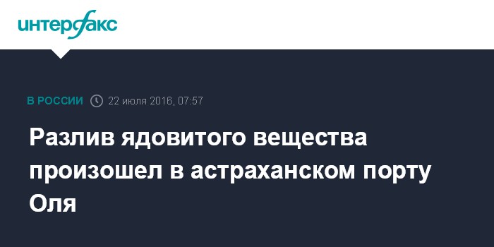 Москва. 22 июля. INTERFAX.RU - Правоохранительные органы проводят проверку по факту разлива ядовитого вещества в порту Оля (Астраханская область), сообщил агентству "Интерфакс" источник в госорганах в пятницу.