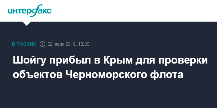 Москва. 22 июля. INTERFAX.RU - Министр обороны России генерал армии Сергей Шойгу в пятницу прибыл с рабочей поездкой в Крым.