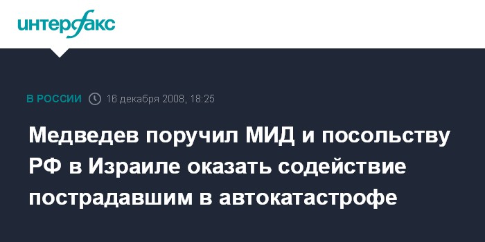 Медведев поручил МИД и посольству РФ в Израиле оказать содействие пострадавшим в автокатастрофе
