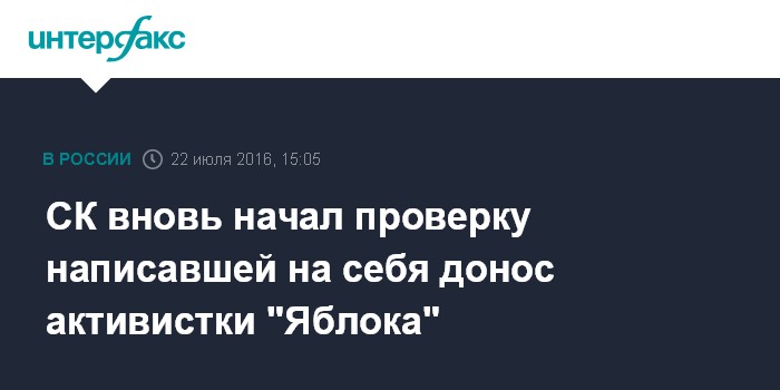СК вновь начал проверку написавшей на себя донос активистки "Яблока"