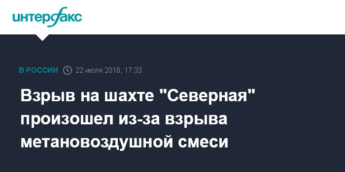 Москва. 22 июля. INTERFAX.RU - Авария на шахте "Северная" произошла в результате взрыва метановоздушной смеси на выемочном участке лавы 412-з пласта "Мощный ", сообщает пресс-служба Ростехнадзора.