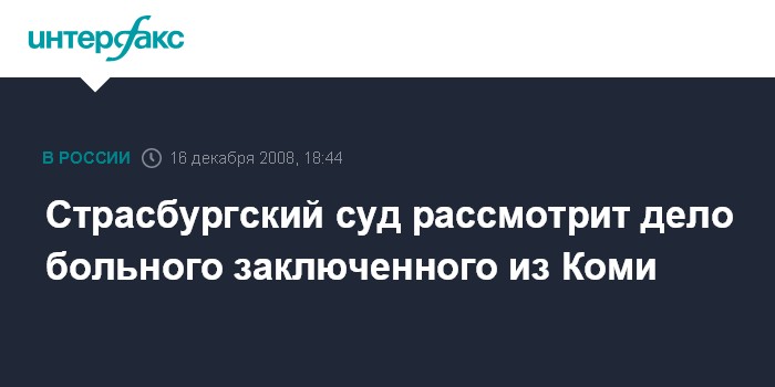 Как сообщили "Интерфаксу" в Коми правозащитной комиссии "Мемориал", куда поступило соответствующее письмо из Страсбурга о принятии такого решения, суд будет выяснять, соответствуют ли условия содержания осужденного требованиям статьи 3 Европейской конвенции о защите прав человека, которая запрещает пытки и другие формы унижающего людей наказания.