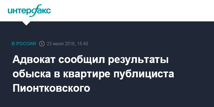 Москва. 23 июля. INTERFAX.RU - Следственные органы во время обыска в московской квартире публициста Андрея Пионтковского, публикации которого на сайте "Эха Москвы" стали поводом для возбуждения уголовного дела об экстремизме, не нашли никаких незаконных материалов, сказал " Интерфаксу" в субботу адвокат Марк Фейгин.