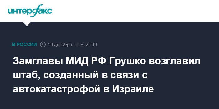 Москва. 16 декабря. INTERFAX.RU - В связи с автокатастрофой в Израиле в МИД России создан чрезвычайный штаб во главе с замминистра иностранных дел РФ Александром Грушко.