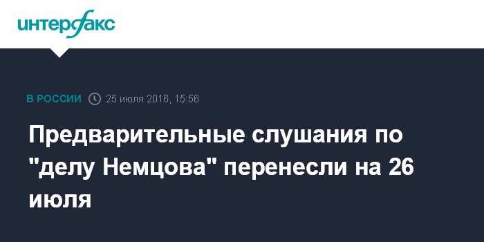 Москва. 25 июля. INTERFAX.RU - Московский окружной военный суд перенес на 26 июля предварительные слушания по уголовному делу в отношении предполагаемых исполнителей убийства оппозиционного политика Бориса Немцова, сообщила "Интерфаксу" пресс-секретарь суда Ирина Жирнова.