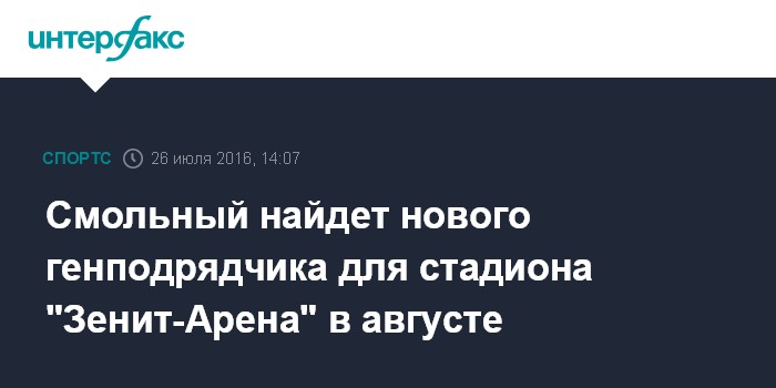Москва. 26 июля. INTERFAX.RU - Смольный планирует заключить контракт на завершение строительства стадиона "Зенит-Арена" на Крестовском острове с новым генподрячиком до конца лета. Об этом сообщает пресс-служба администрации Петербурга.