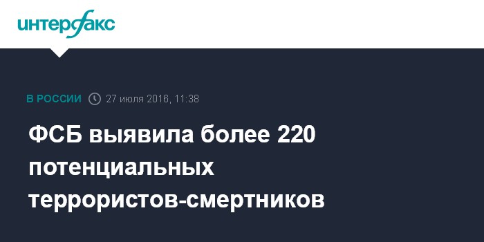 Москва. 27 июля. INTERFAX.RU - Директор ФСБ России Александр Бортников сообщил, что на оперативном контроле российских спецслужб находятся более 220 человек, которые могут убить себя ради совершения теракта.