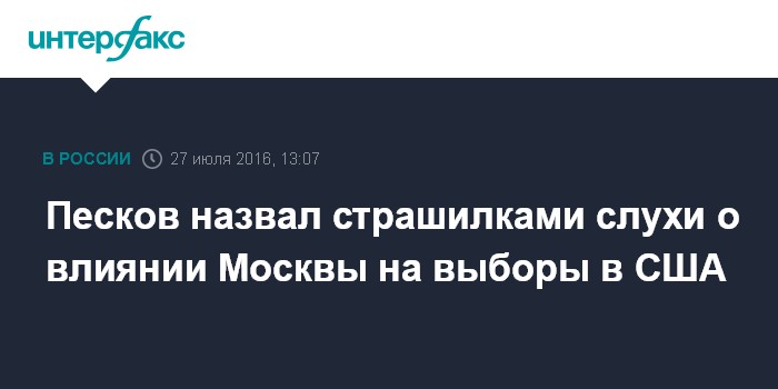Москва. 27 июля. INTERFAX.RU - Пресс-секретарь президента РФ Дмитрий Песков заявил, что Россия тщательно избегает любых действий, которые могли бы трактоваться как вмешательство Москвы в президентские выборы в США.