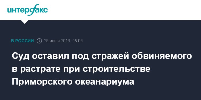 Суд оставил под стражей обвиняемого в растрате при строительстве Приморского океанариума